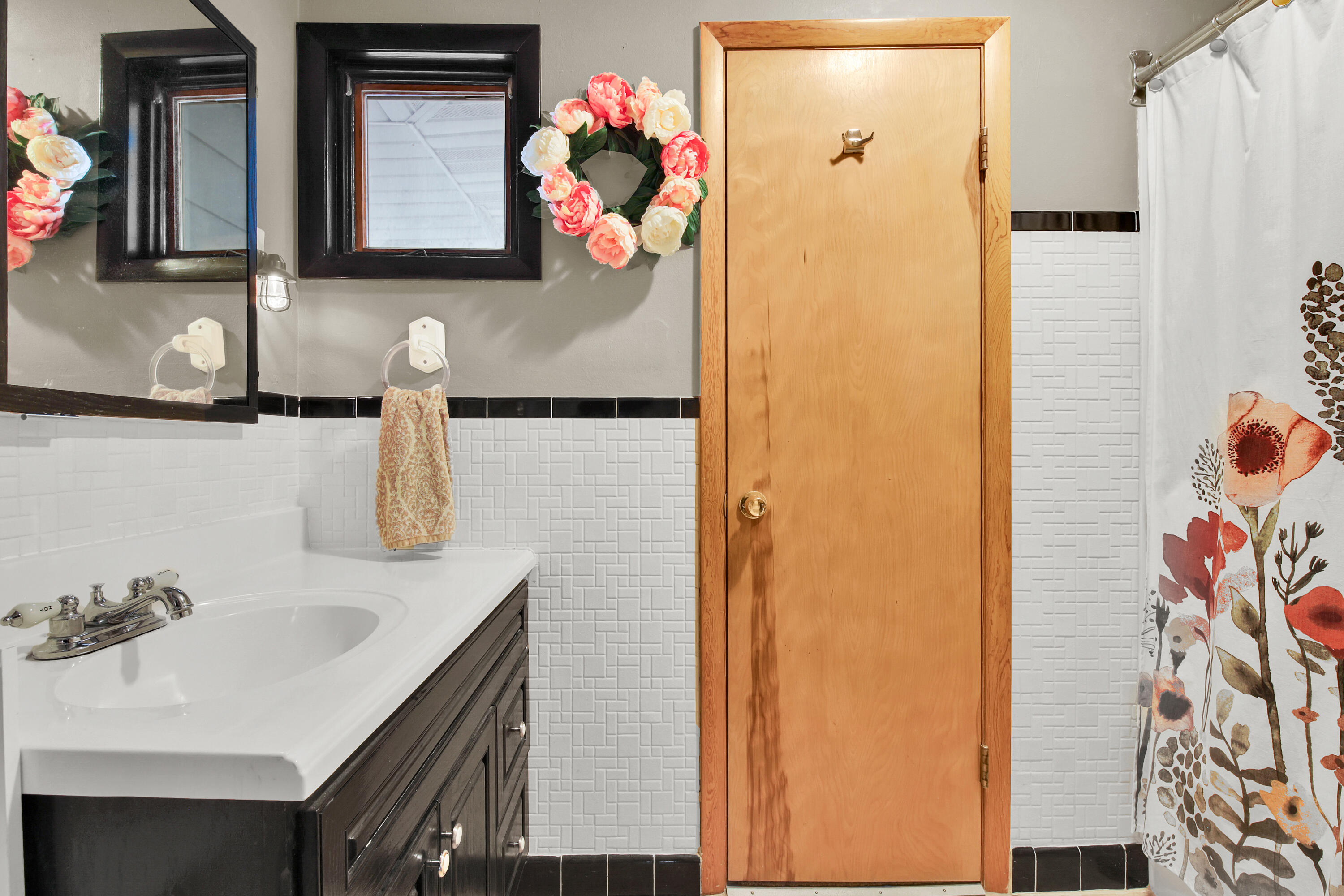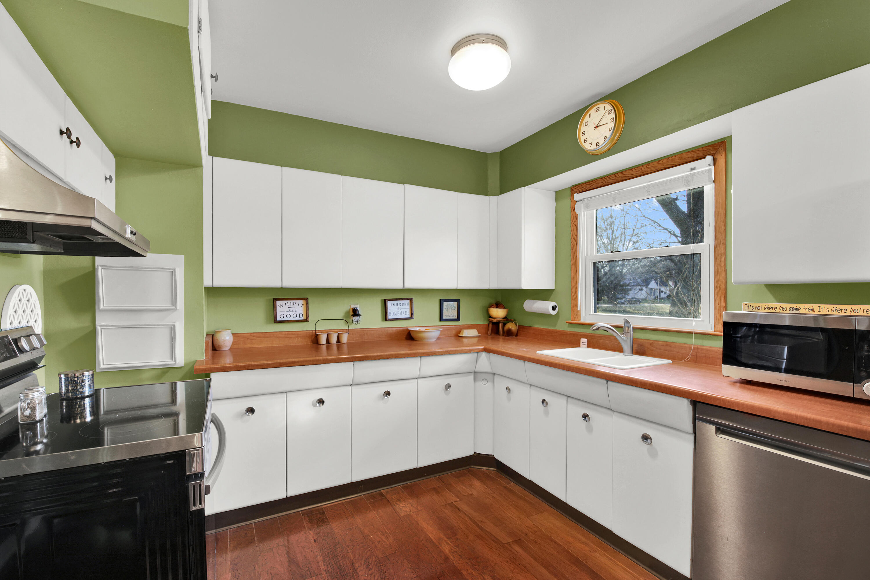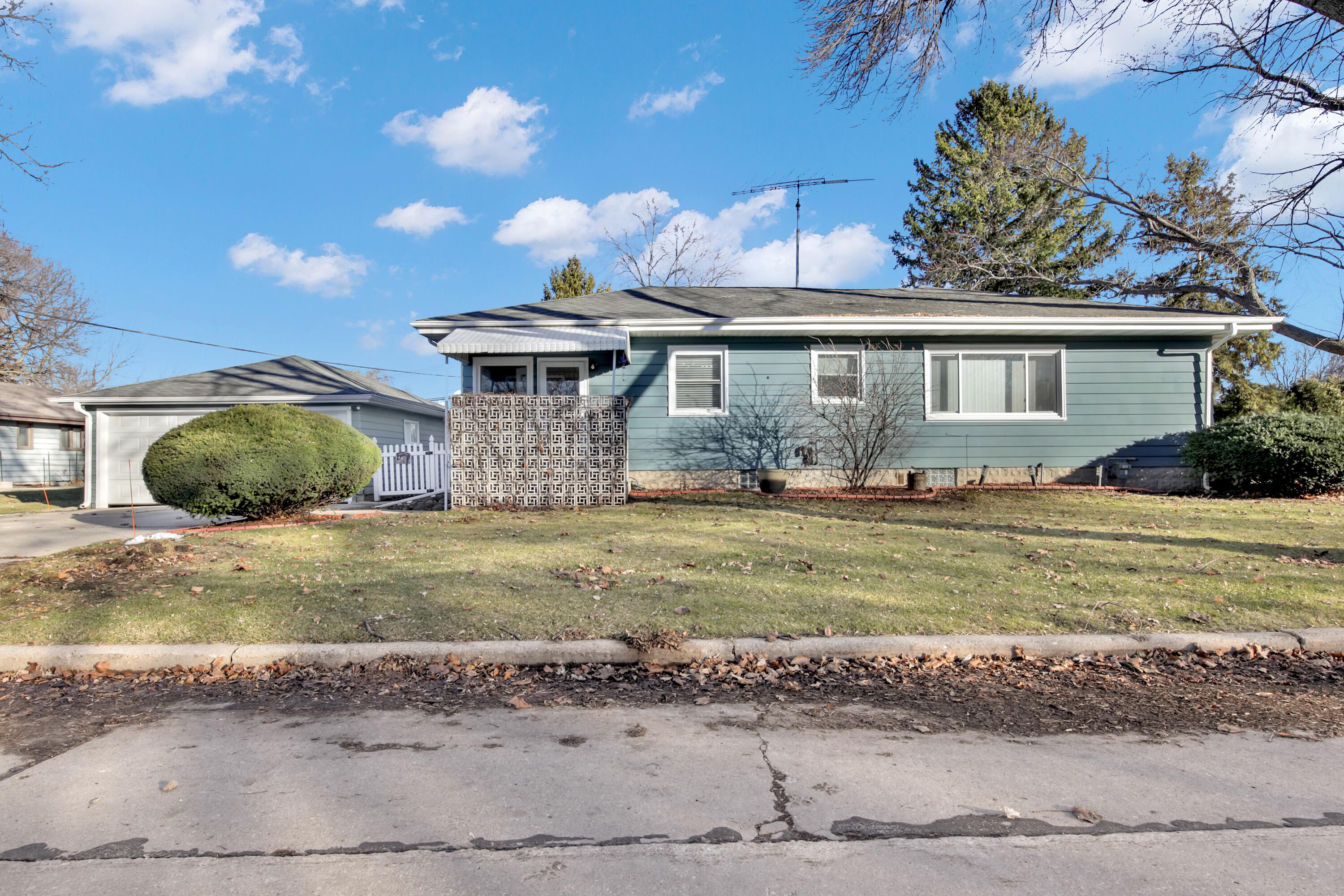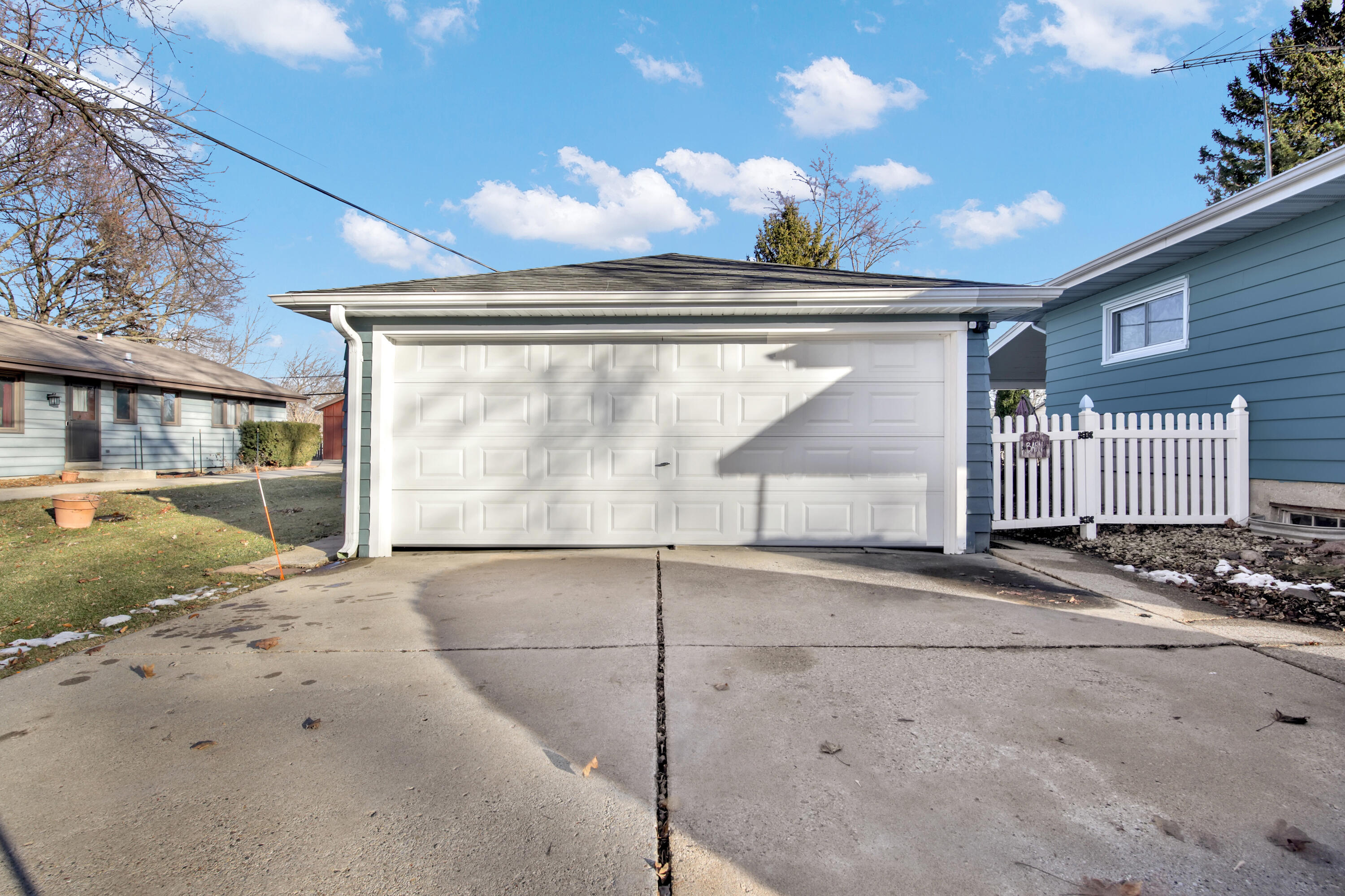 This Rainbow Gardens mid-century gem is situated on over a 1/4 acre and has so much to love. Enter into a generous living room with vintage built-ins and bright windows. Visit in the expansive eat-in kitchen with restored retro cabinetry and a full suite of stainless steel appliances. Three large bedrooms and a full bath are conveniently located on the main level. Spill out into the fenced yard and covered patio to enjoy all that the warm months have to offer. Plentiful yard space allows for gardening and your heated pool is ready to go. The adorable mudroom off the kitchen offers a charming welcome every time you come home and the two car detached garage has more than enough space for all your toys. Need more? The basement is as large as the upstairs and totally unfinished. See it today!