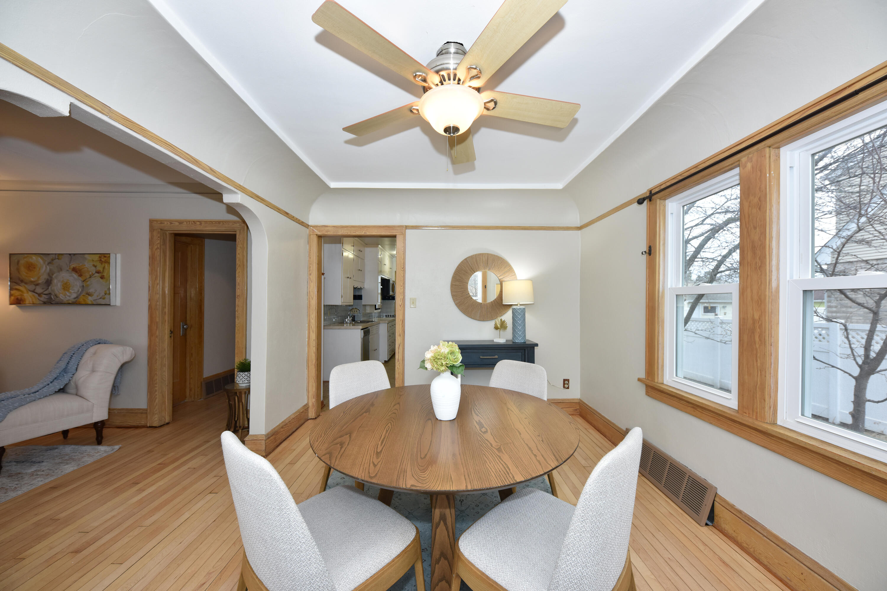Welcome to 1320 Manitowoc Avenue! This beautifully maintained 1.5-story bungalow offers 3 bedrooms, 1.5 baths, and nearly 1,200 sq ft filled with abundant natural light. Newly refinished hardwood floors (2026), original stained glass windows, and a new roof (2021) blend timeless charm with smart updates. Enjoy an additional bonus room upstairs as the perfect flex space. Additional improvements include updated windows (2017), furnace (2019), new garage door (2021) and fully replaced lead pipes (2025). Enjoy your own backyard orchard with peach, pear, apple, sweet and sour cherry trees, plus raspberries, rhubarb, and a blooming crabapple tree. An added bonus is a spacious 2-car garage with ample storage. Pre-listing inspection completed for added peace of mind.