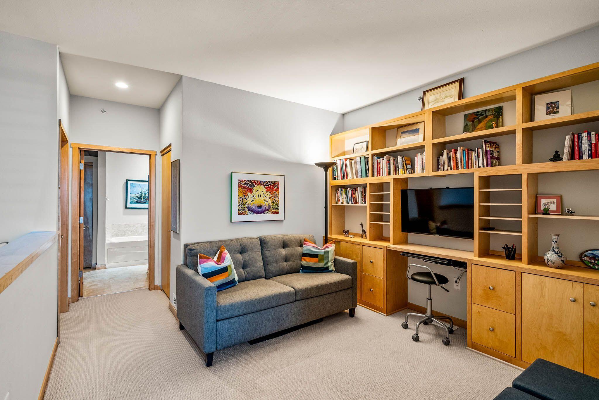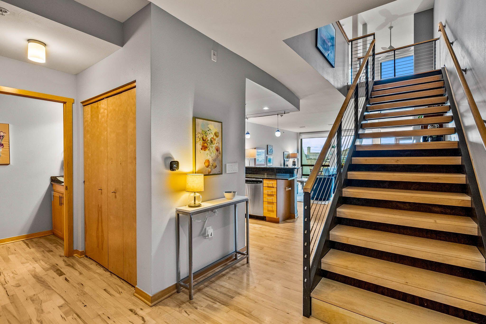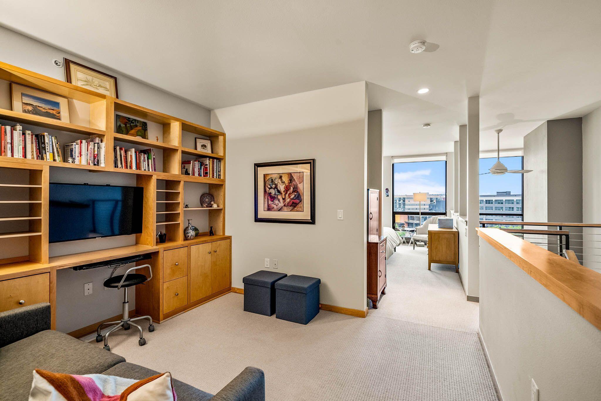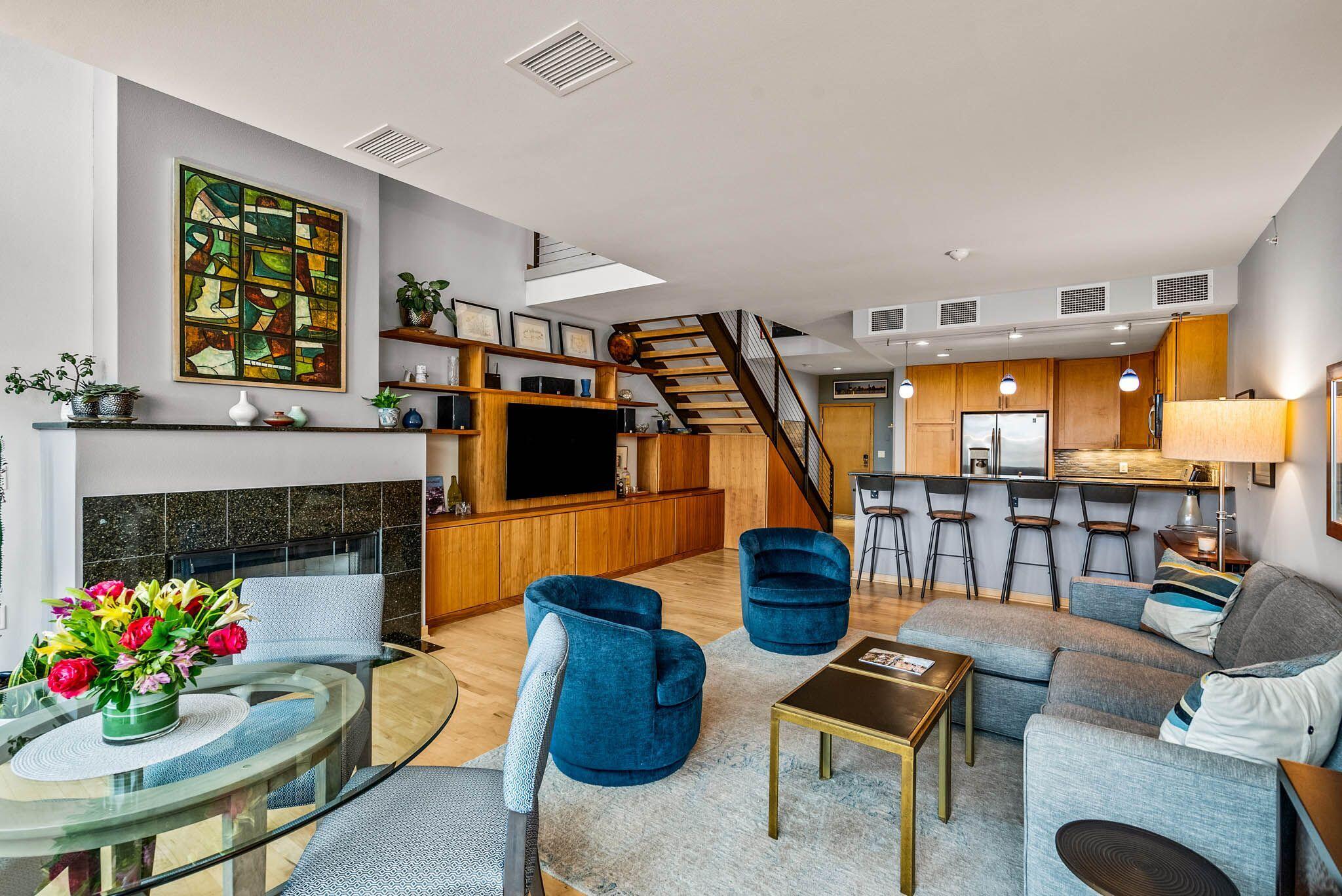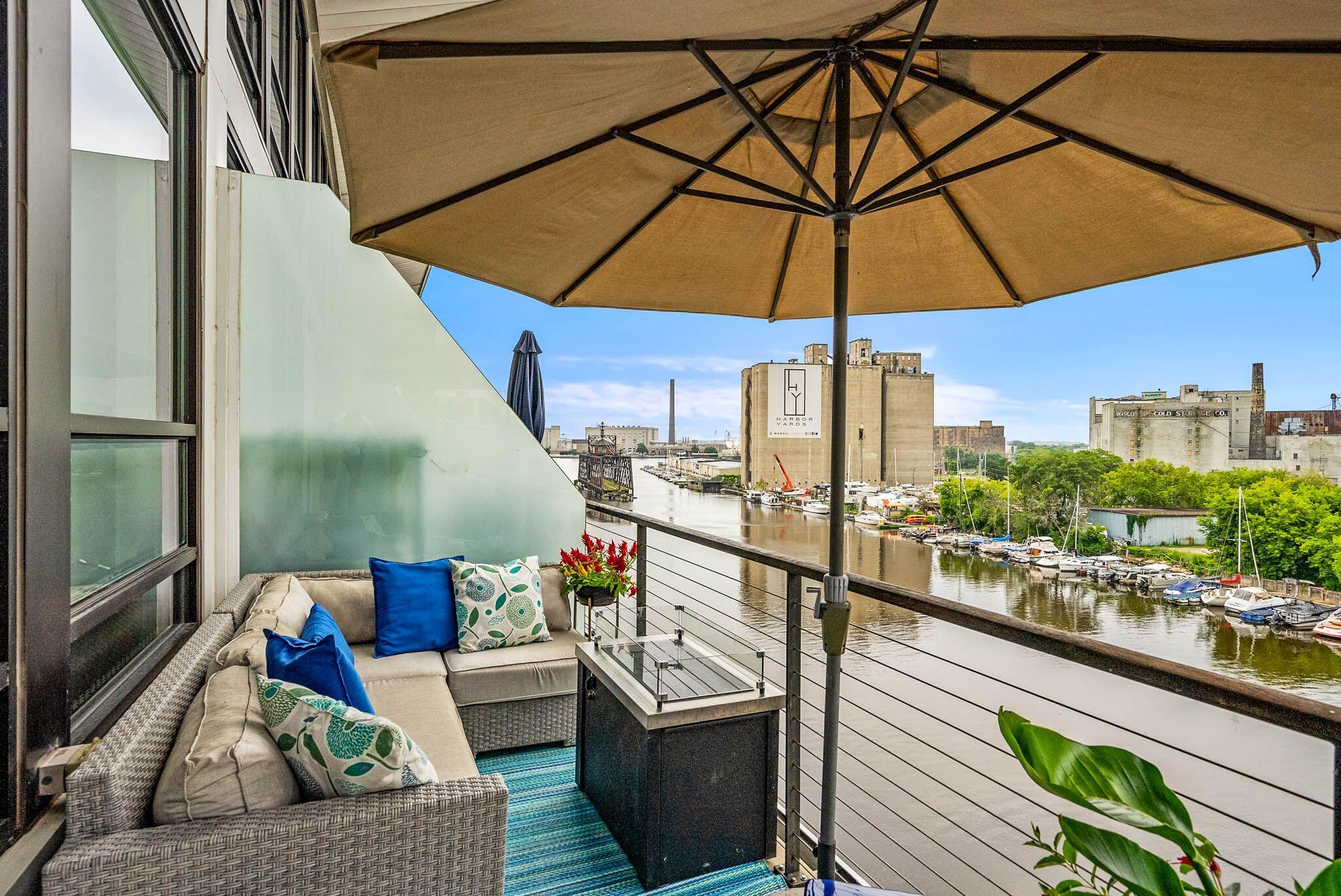 Third Ward living at its absolute best in this 2 story loft style unit at Marine Terminal Lofts. Owners have beautifully customized this sun drenched river facing unit and made it a perfect urban oasis. The great room with gas fireplace and gorgeous custom built-ins flows perfectly to kitchen with granite counters and dining space over looking the river. Enjoy the serenity of gorgeous sunsets as you grill out on your large deck with 2 gas lines for grill and fire pit. Take the open staircase to the second floor primary space with 2 closets and large bath with soaker tub and walk in shower. Excellent additional work from home space, reading a book, or just chilling and watching TV in the separate den with custom built-in shelves. All this plus 2 side by side parking spots!