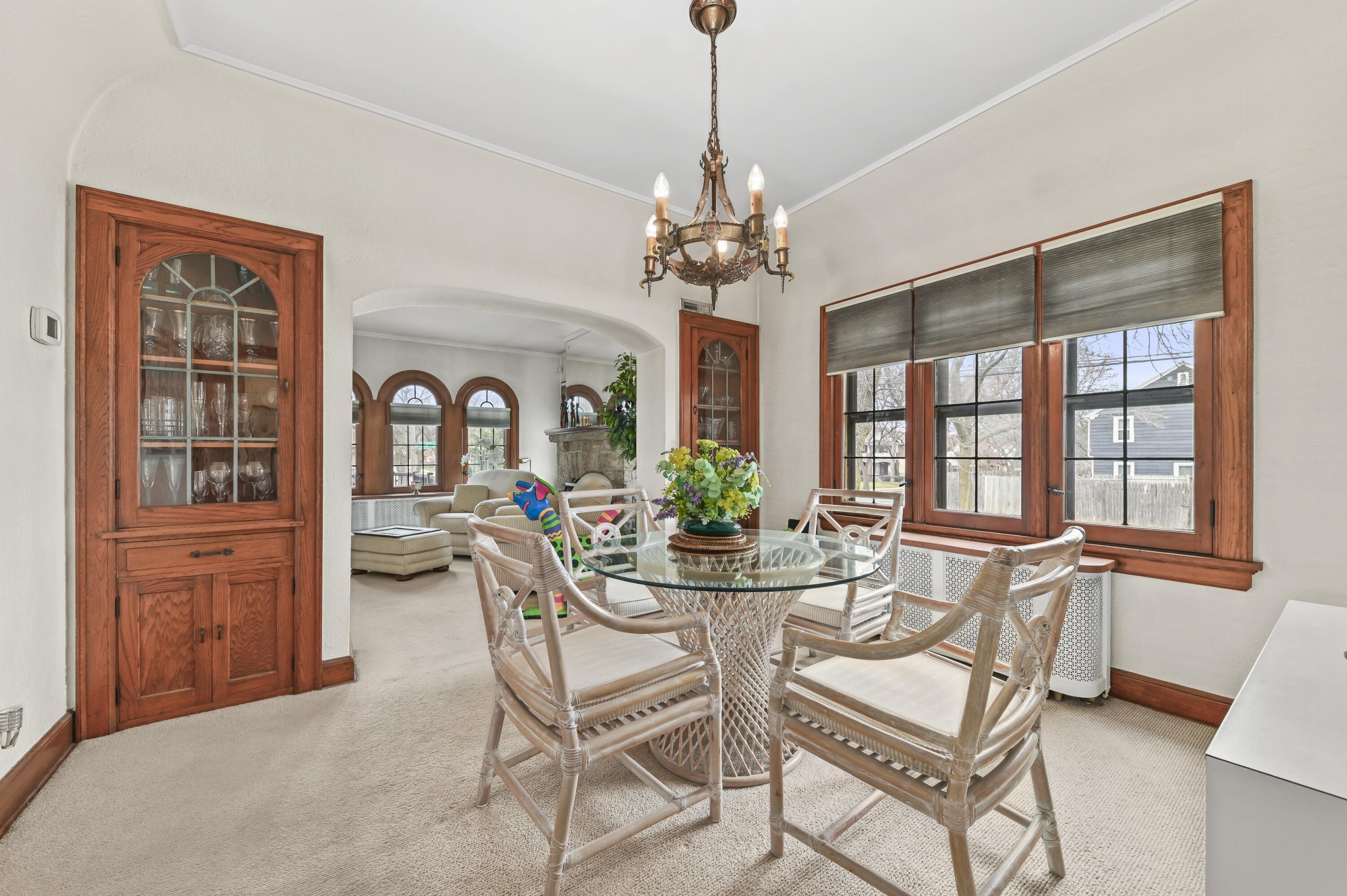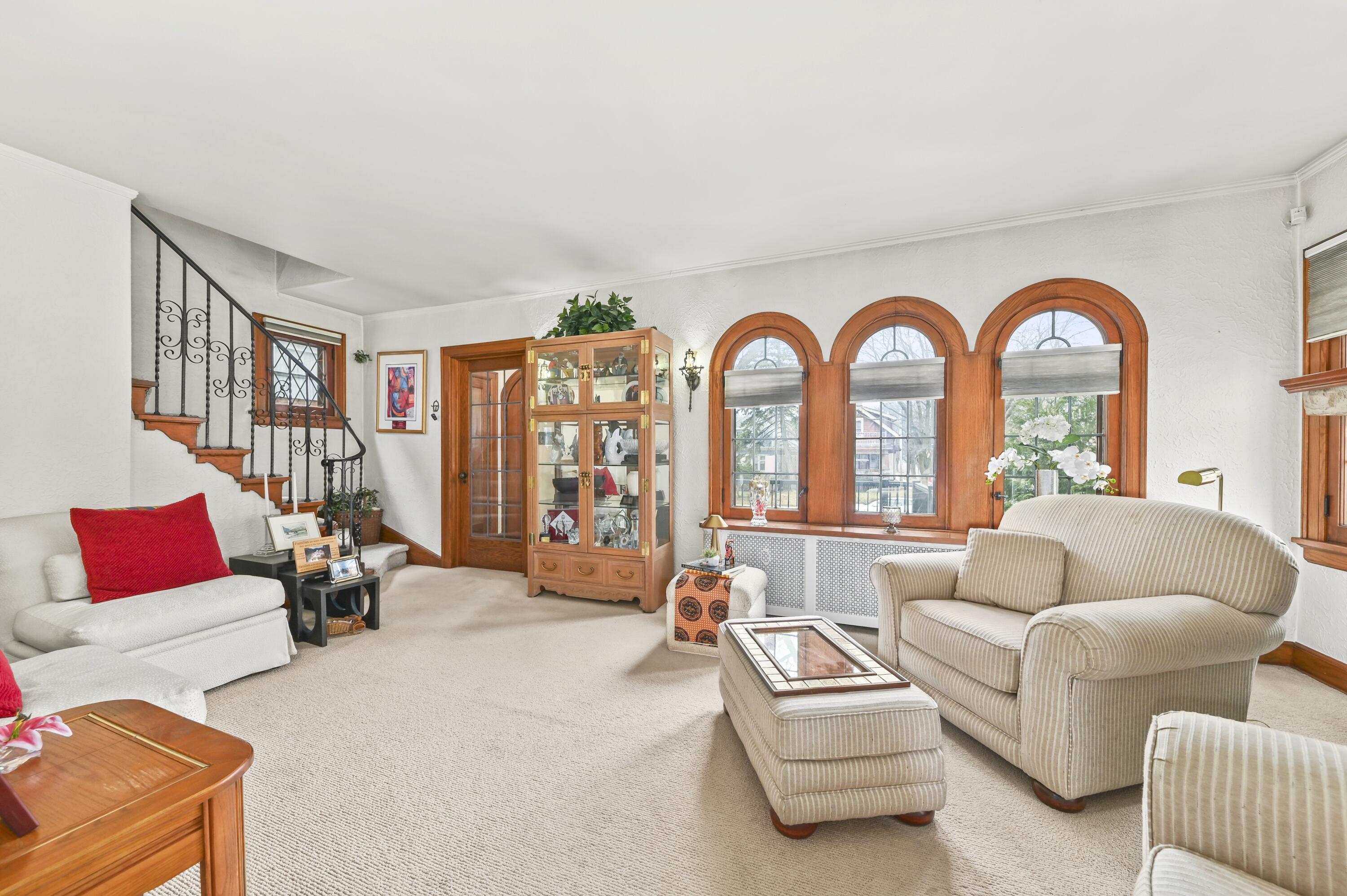 All the charm combined with meticulous care make this the perfect choice. This lovely brick Tudor Provincial style home is perfect for entertaining, a growing family, or aging in place. The spacious living room offers hardwood floors protected by wool carpet, a lannon stone fireplace, and beautiful Palladian style leaded glass windows that invites the sunlight to pour in. The formal dining room easily holds your holiday sized table and has charming built-in leaded glass cabinets. Cook up a storm in the eat-in kitchen with tons of storage and counter space, and center island. Two bedrooms and a full bath complete the 1st floor. Upstairs find a large primary bedroom, a 4th bedroom, and a dreamy paneled family room with bookcases and skylights. Additional hang out space in LL w/half bath!